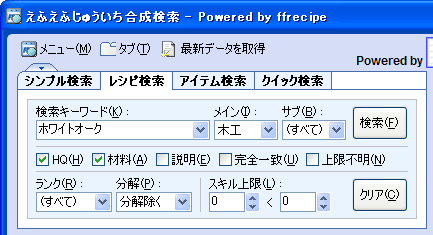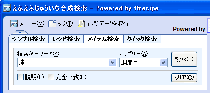 こちらは「レシピ」ではなく、「アイテム」そのものを検索する画面で