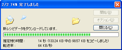 新レシピデータをダウンロード中の画面です。レシピデータの更新もソフト